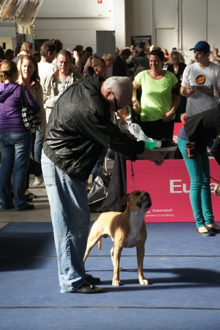 Aan het showen moet BJ nog een beetje wennen, hij vind de omgeving vaak nog leuker, dus nog veel oefenen!!!!