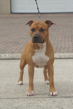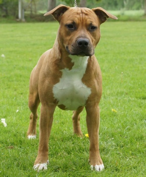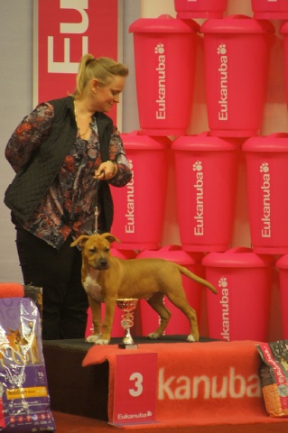 Magic is een terrier type Amstaff. Helaas wordt dit type niet vaak gewaardeerd op de show.