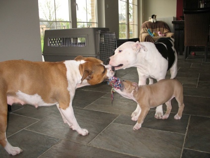Haar vader, Doc Holiday, is ruim een week bij ons in huis geweest nadat hij was overgevlogen uit Amerika. Doc is een fantastische hond met een nog beter karakter. Helaas heeft hij dit niet door gegeven aan Nanouk. Voor de roedel is Nanouk een super hond, maar voor vreemde kan ze nog wel eens lastig reageren. Maar er is perfect mee om te gaan als je het weet.