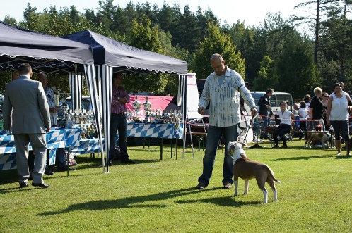 Dit vonden wij een erg knappe prestatie van een hond van slechts 3,5 maand oud. De show was voor honden vanaf 3 maanden tot 2 jaar. Er deden ook veteranen mee (vanaf 8 jaar). Totaal waren er 66 honden ingeschreven.